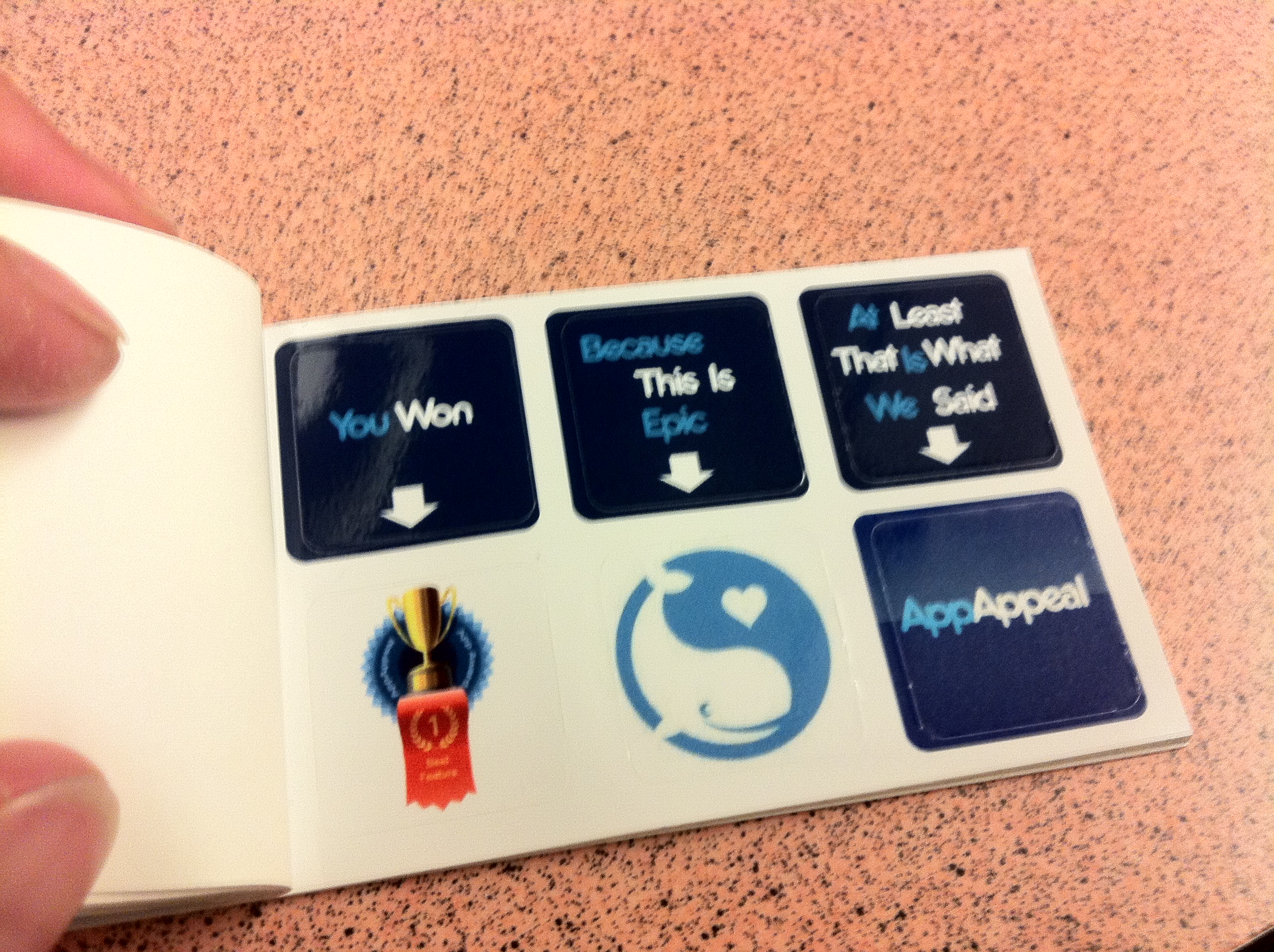 so Moby won an AppAppeal feature award for our cross posting features, yay! they sent us these Moo stickers, Thanks@appappeal