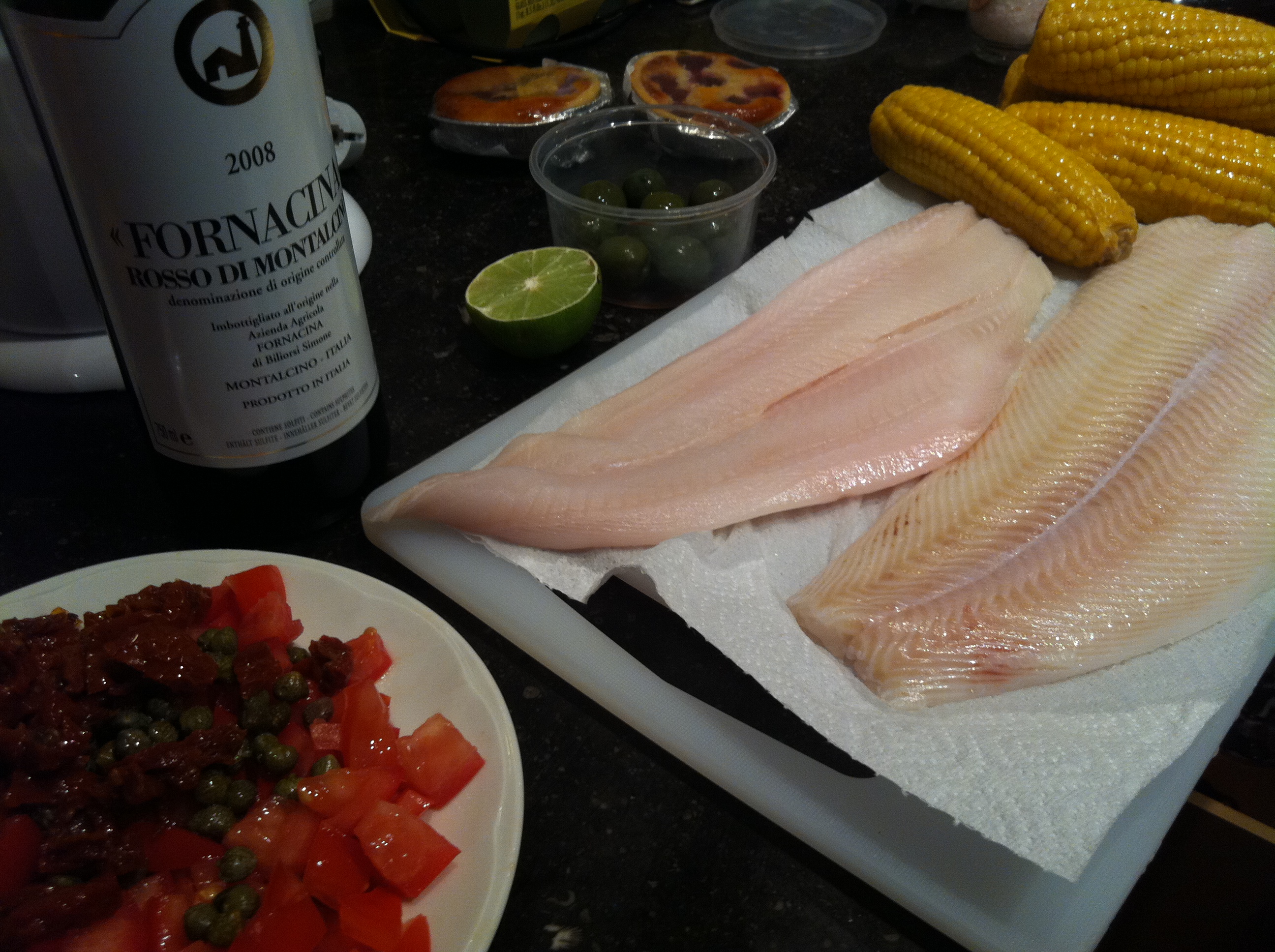 Fish, veggies and pasta for my three monkeys
