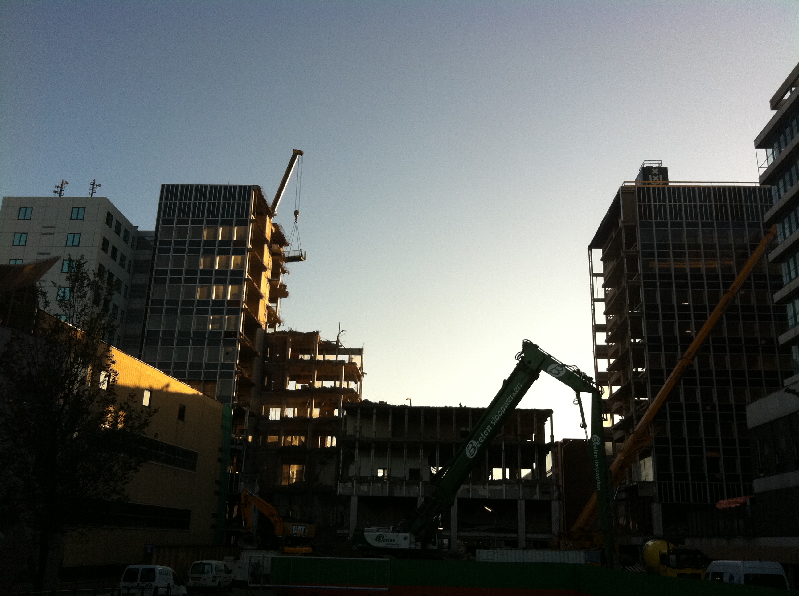 met Mika kijken naar het slopen van een van de lelijkste gebouwen van Amsterdam #love020