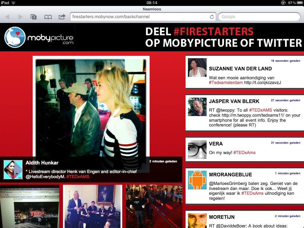 follow the Live reports of #tedxams on the #firestartersnl MobyNow platform (and backchannel)