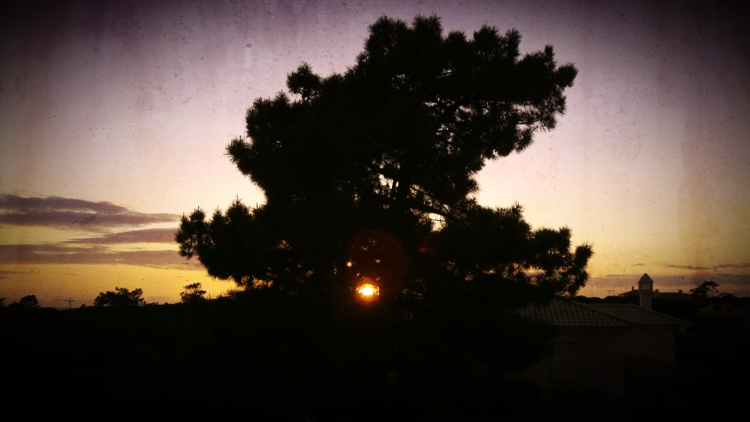 sunset through the tree