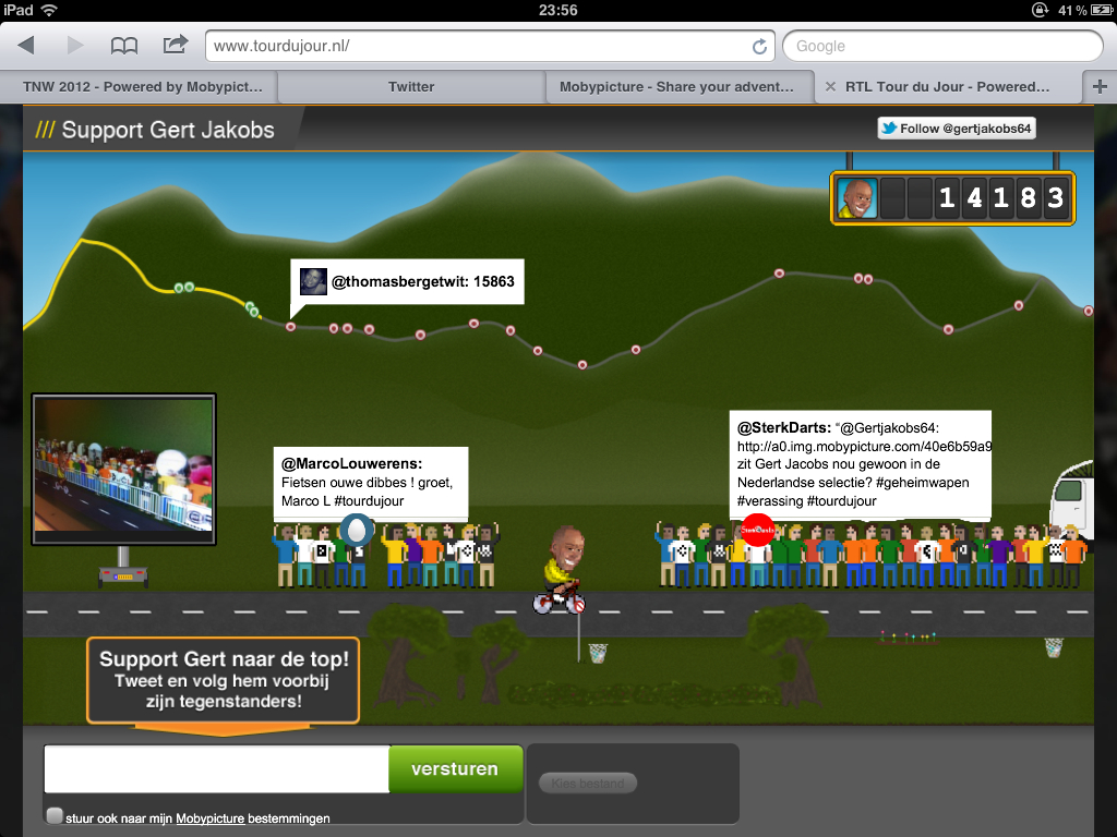 mooi al die aanmoedigingen voorgert jakobsopwww.tourdujour.nl! support hem ook door em te volgen. 1700 volgers achter@thomasbergetwit. ;)