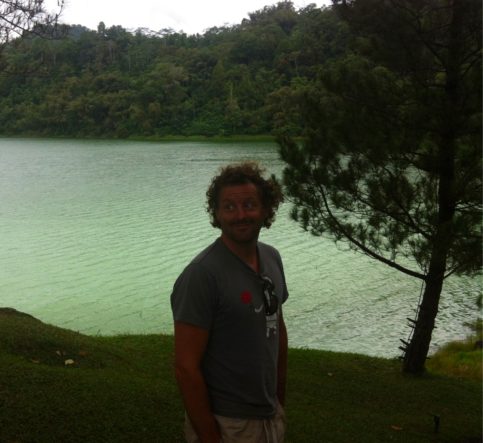 toerist bij vulkaanmeer