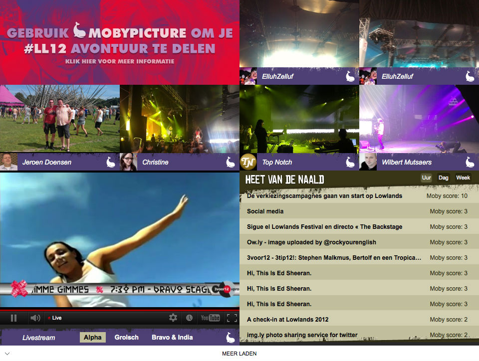 werkelijk een pareltje geworden... de drie live streams hangen nu ook inhttp://ll12.mobynow.com#LL12 - Tribute to Lowlands