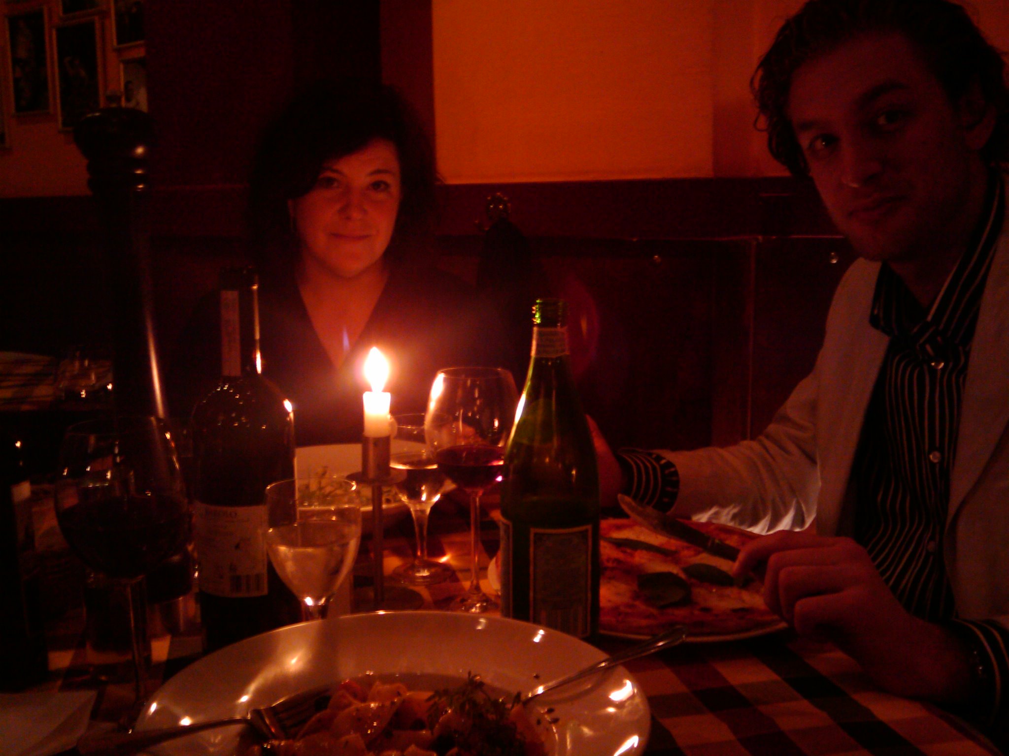 At a nice dinner with Jen and Frank