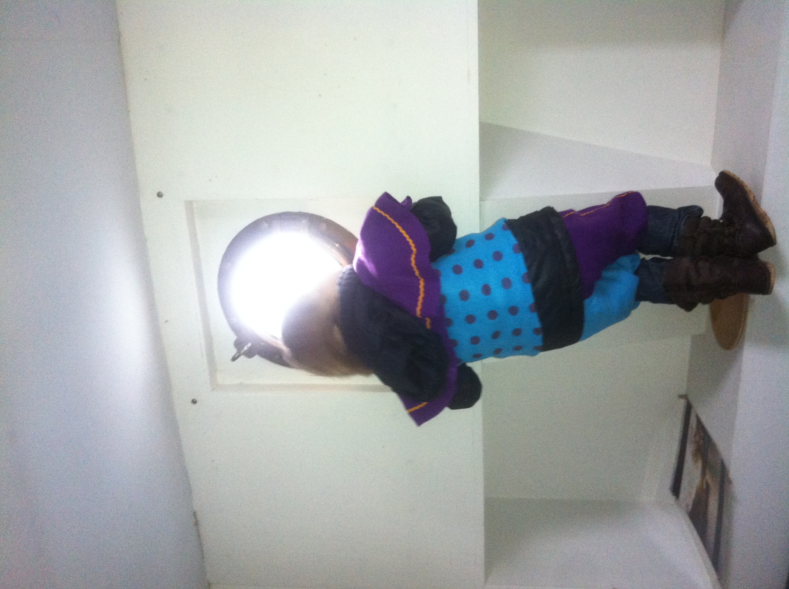 betrapt! klein pietje probeert uit het raam te ontsnappen