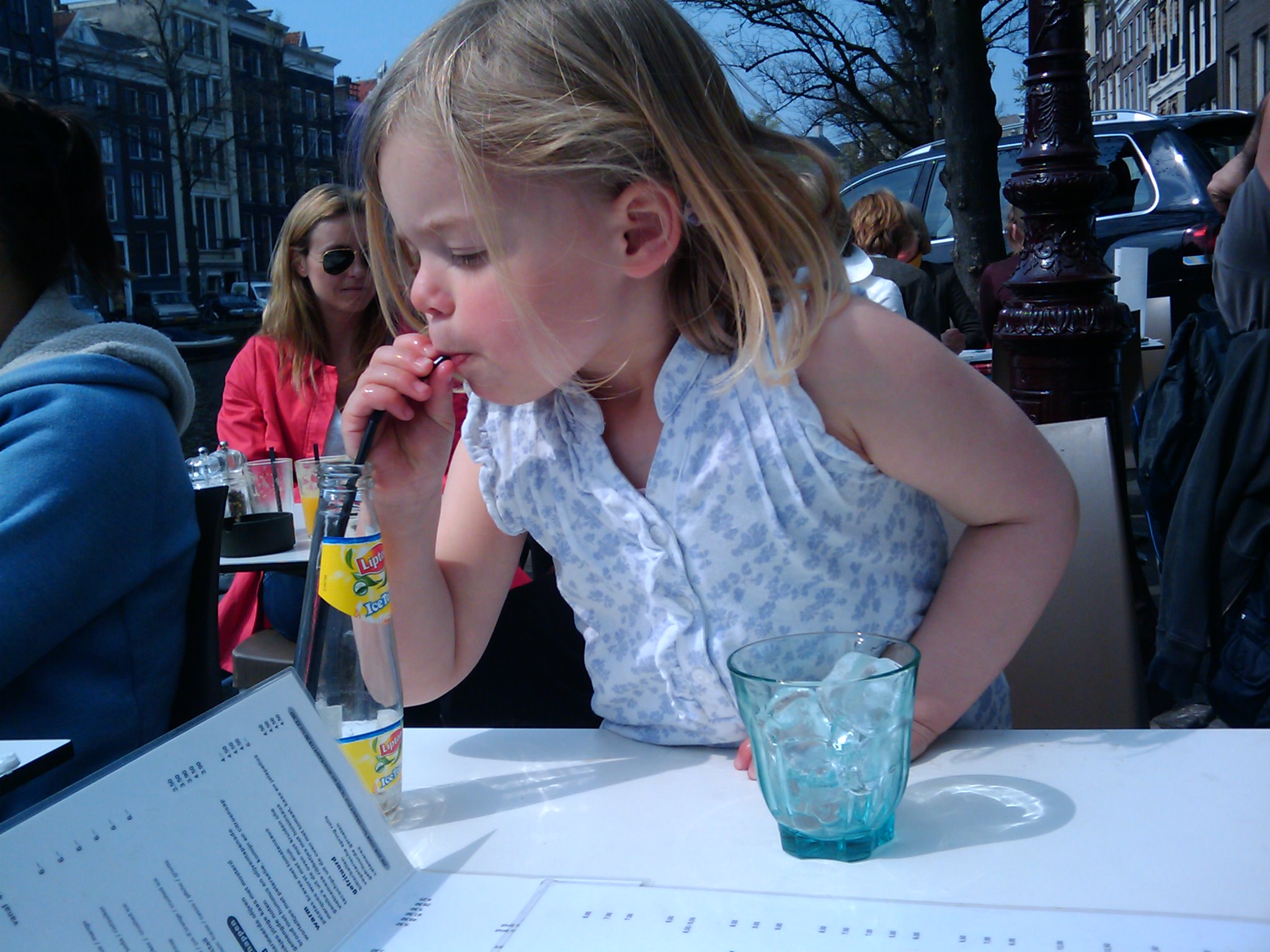 Heeft een gratis ice tea geritseld voor Amelie... portemonnee vergeten...