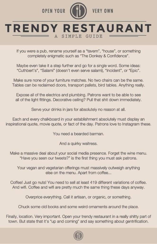 How to launch a hipster restaurant. The Guide.