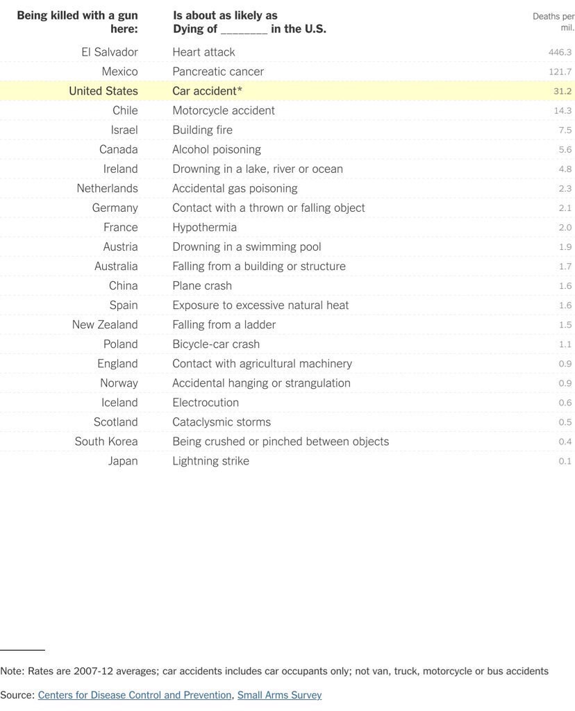 Being killed with a gun in NL is about as likely as dying of accidental gas poisoning in the US.