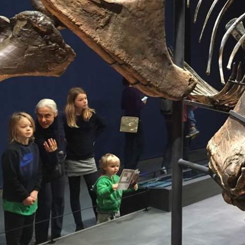 My kids with my mom at the T-rex exhibition... check the two year old on the right #cantstoplaughing
