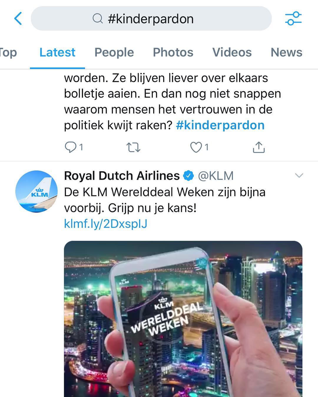 KLM adverteert vliegreizen naast #kinderpardon 😂😂😂😂 #fail #socialmediapardon