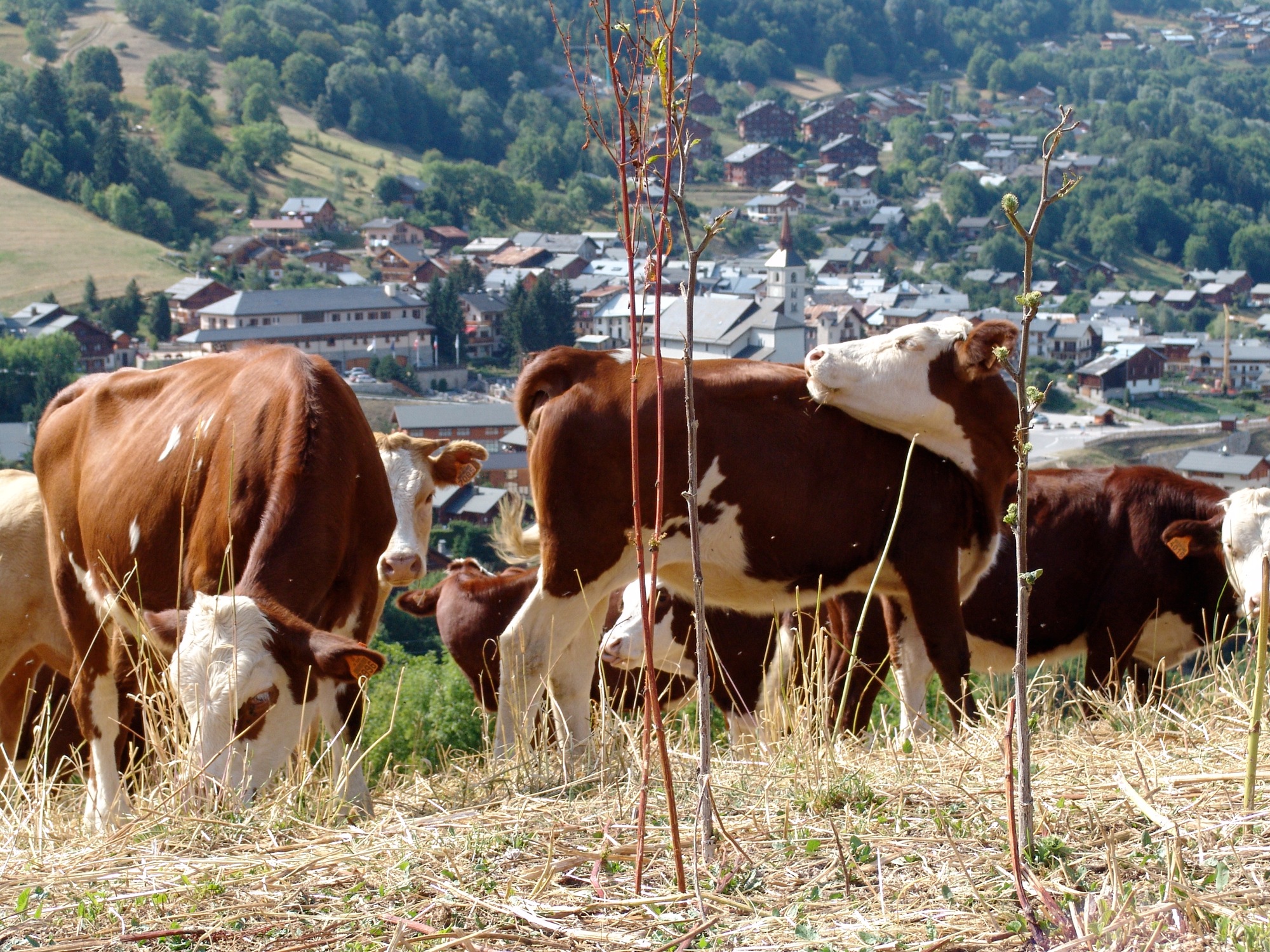de koetjes waar ik het al de hele tijd over heb... en Les Allues op de achtergrond