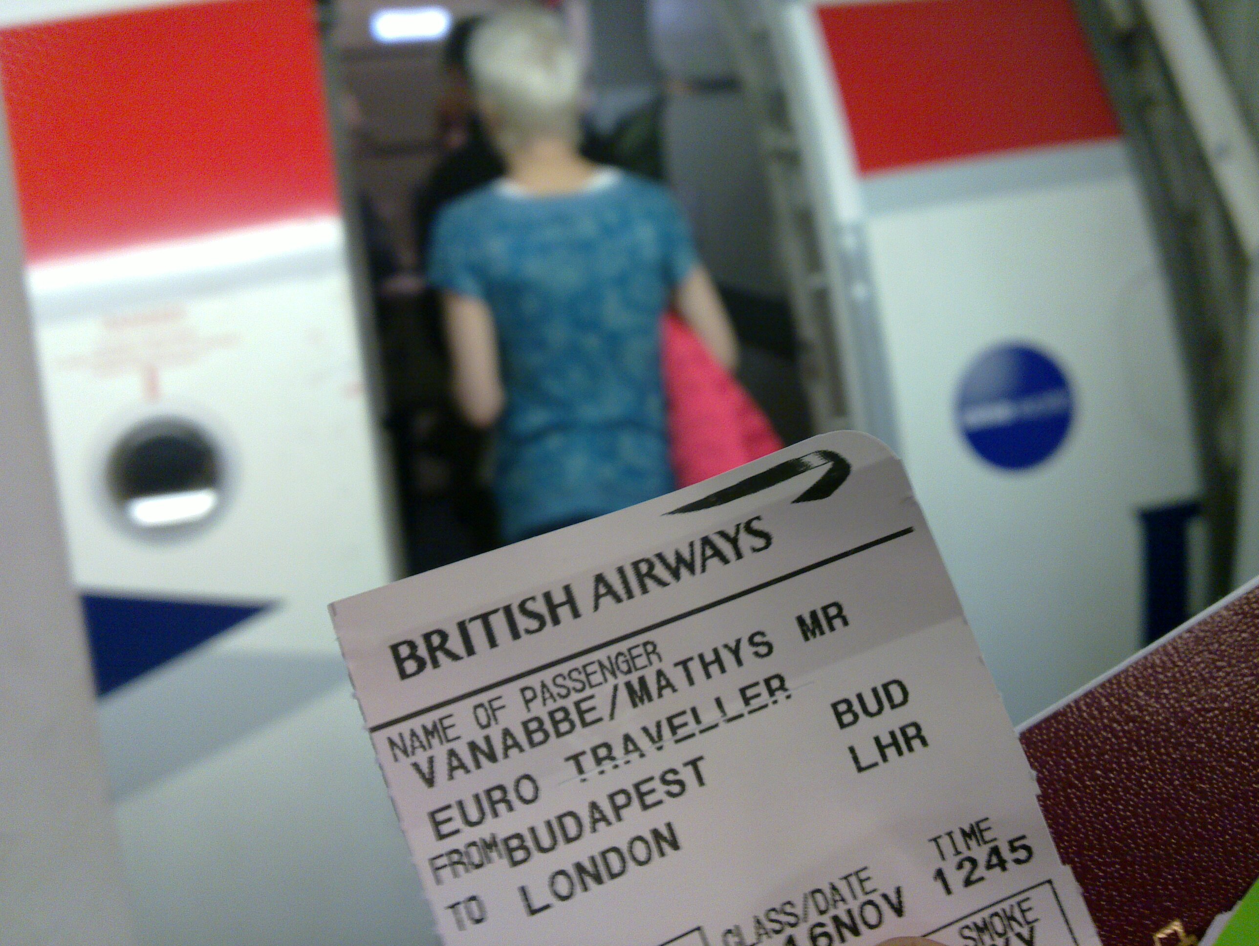 Euro traveller boarding BA869 BUD-LHR