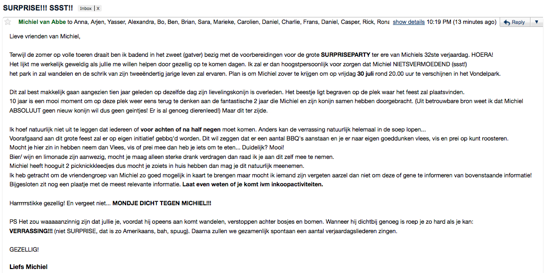 LOL, niet retweeten anders is de verrassing eraf... (heb echt het allergrappigste broertje ever...)