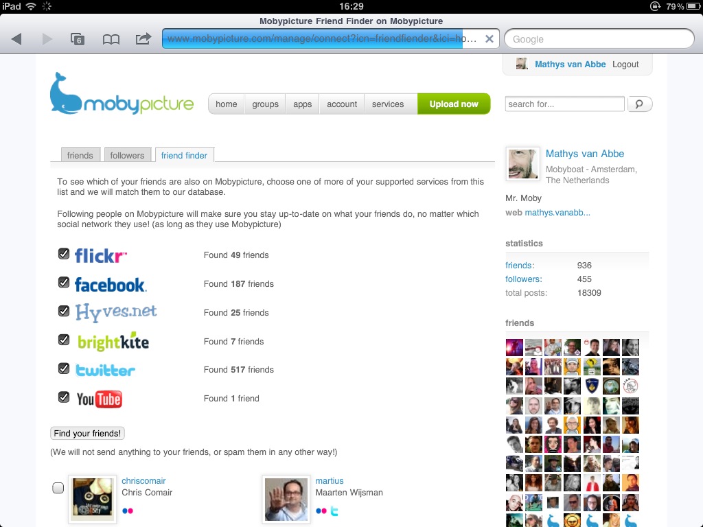 Following your friends on Moby will let you enjoy their adventures even more... use the friend finder!