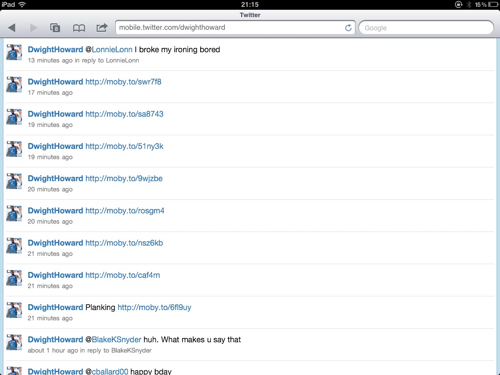 so yeah, moby was busy right now becauseDwight Howard(over 2000000 followers) was planking the shit out of Twitter